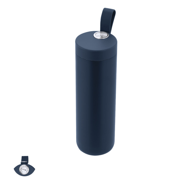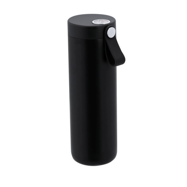 Contenitore termico in acciaio inox a doppia parete da 500 ml di capacità, con misuratore di temperatura analogico, con intervallo da 0º a 100º. Con tappo di sicurezza, maniglia in silicone integrata e corpo abbinato. Privo di BPA.