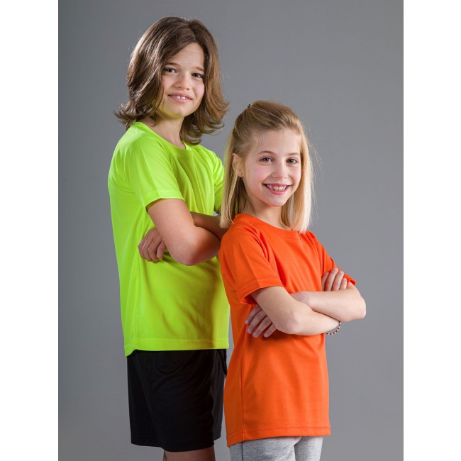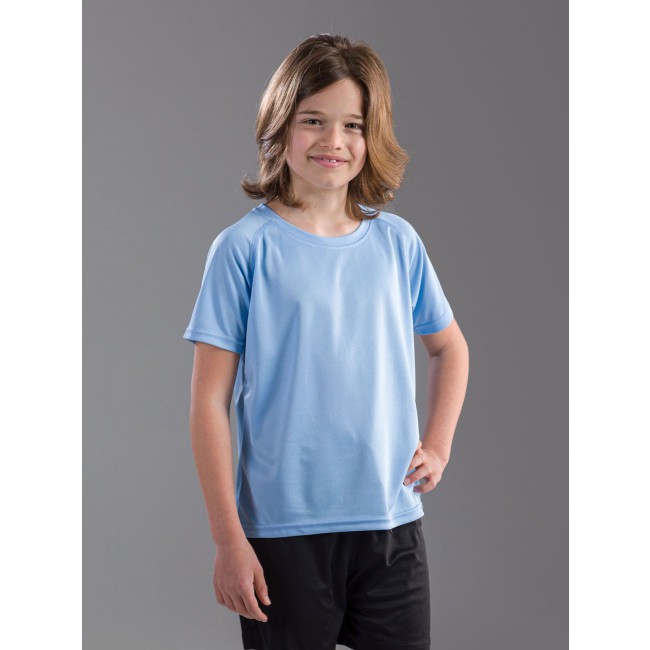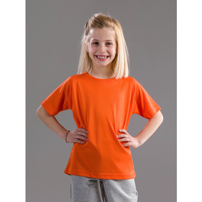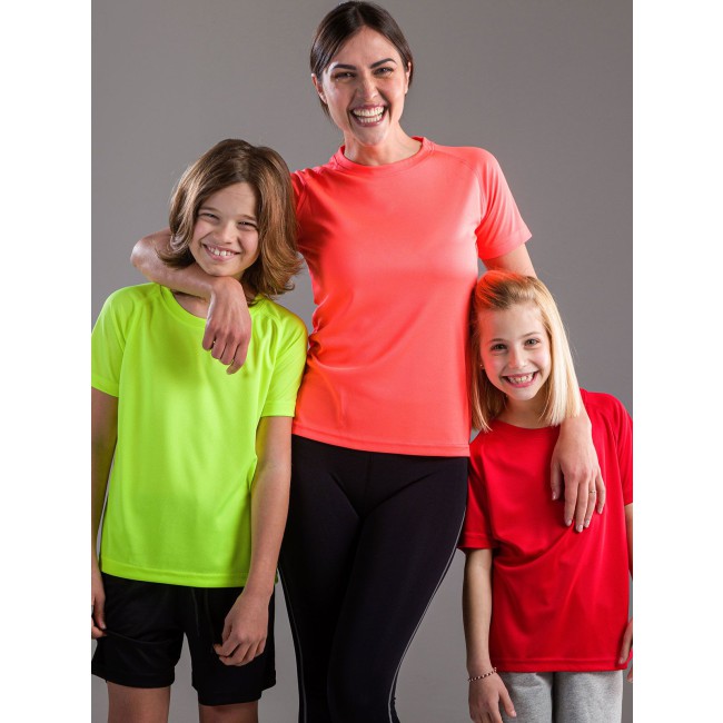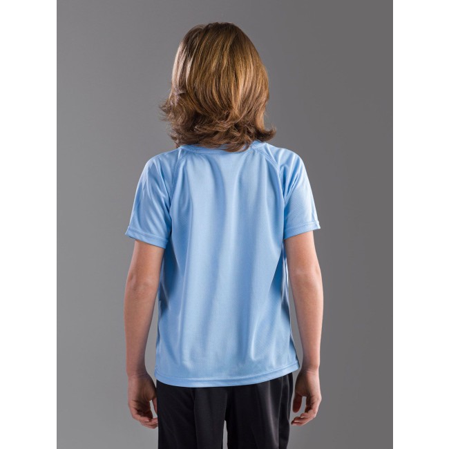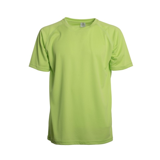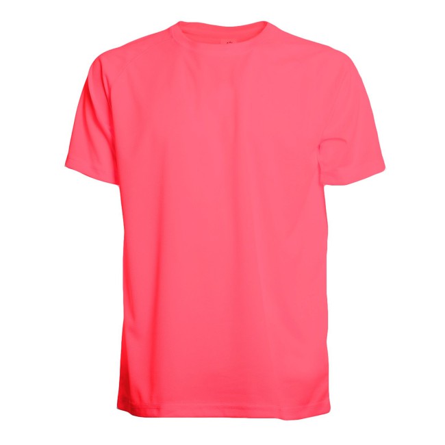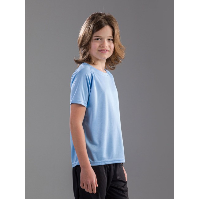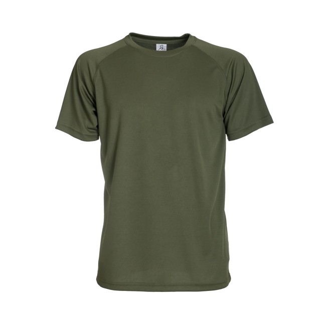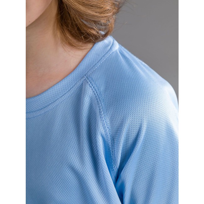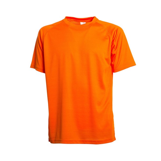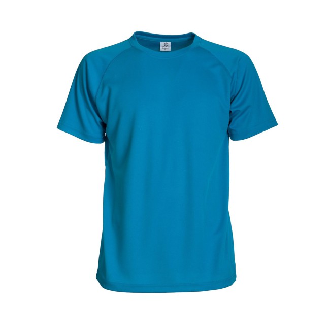 100% poliestere microforato. T-shirt maniche corte raglan, cuciture flatlock, tessuto traspirante, struttura con cuciture laterali. Etichetta removibile.