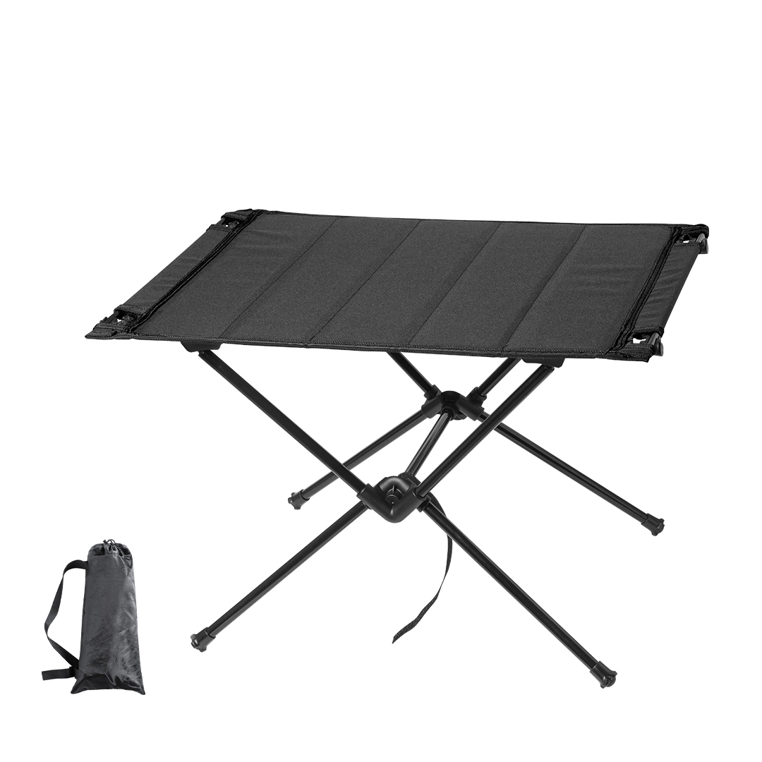 Tavolo pieghevole con corpo in robusto metallo tubolare e superficie in resistente poliestere 600D. Con cuciture rinforzate e gambe rinforzate antiscivolo. Facile da piegare e di dimensioni compatte, confezionato singolarmente.