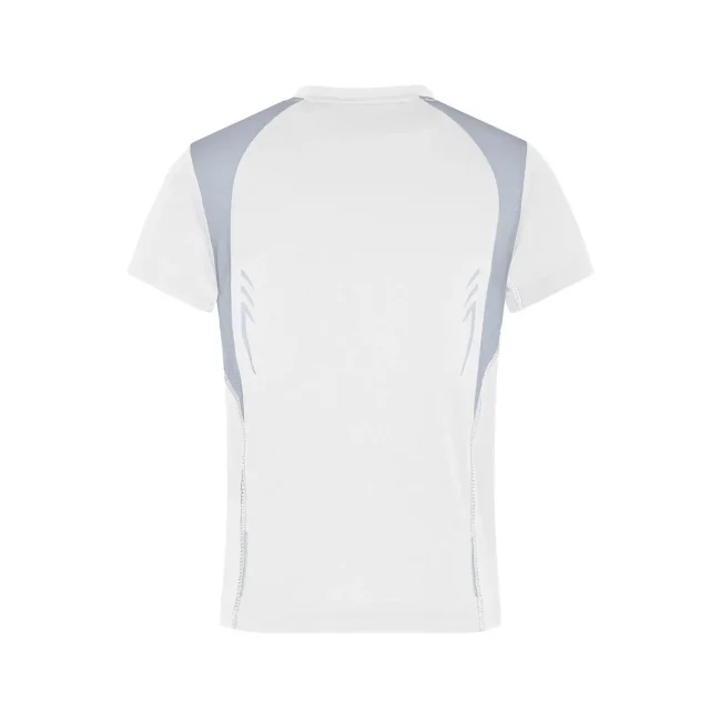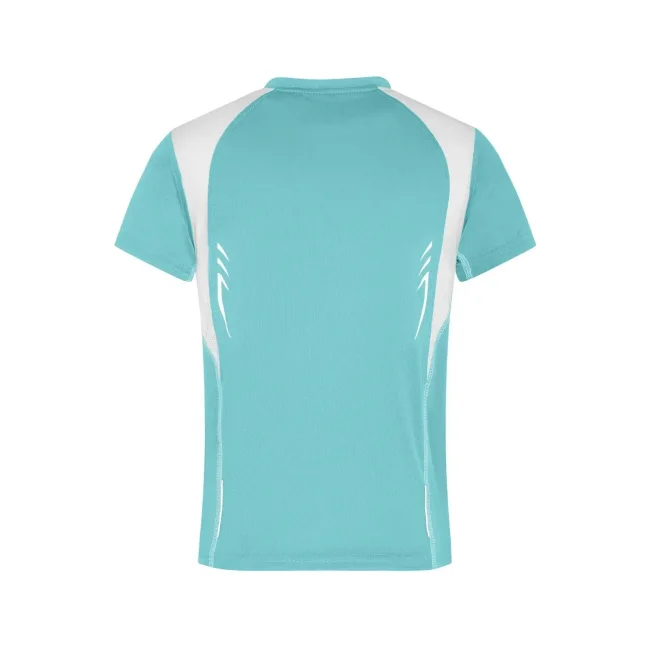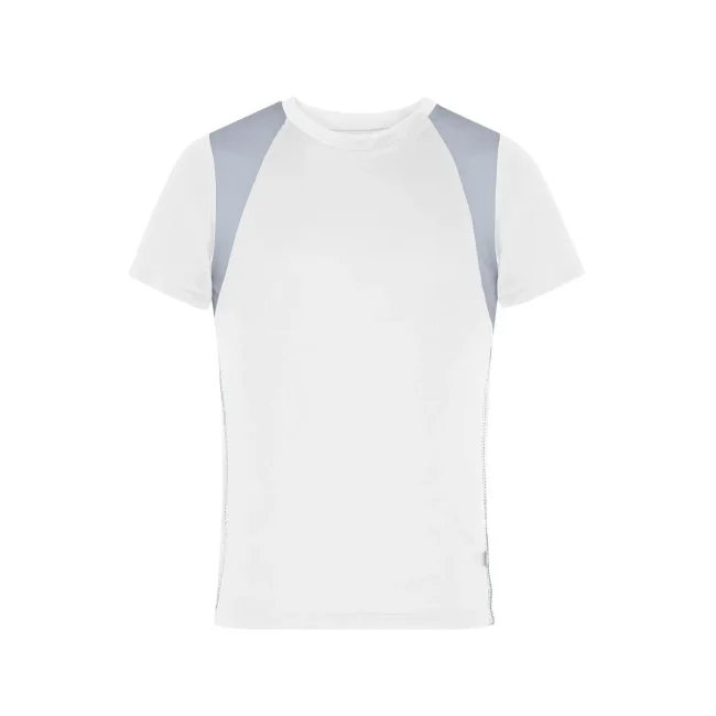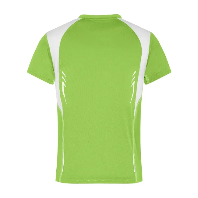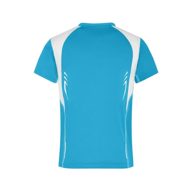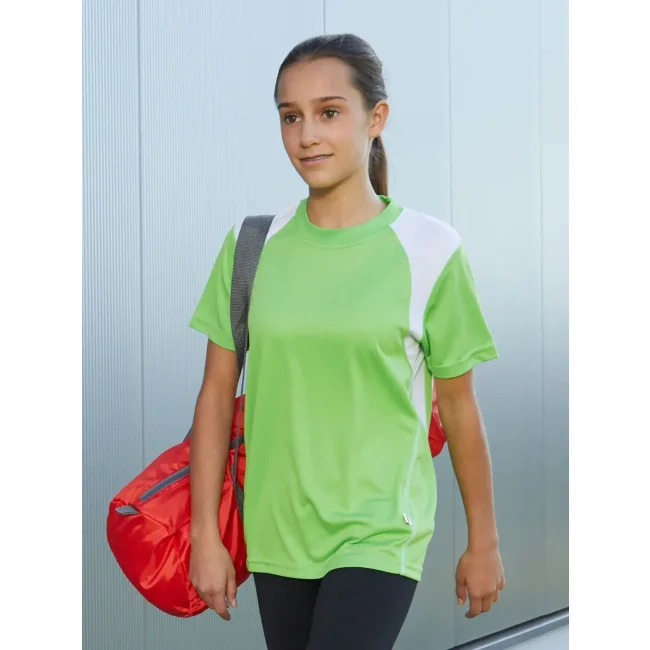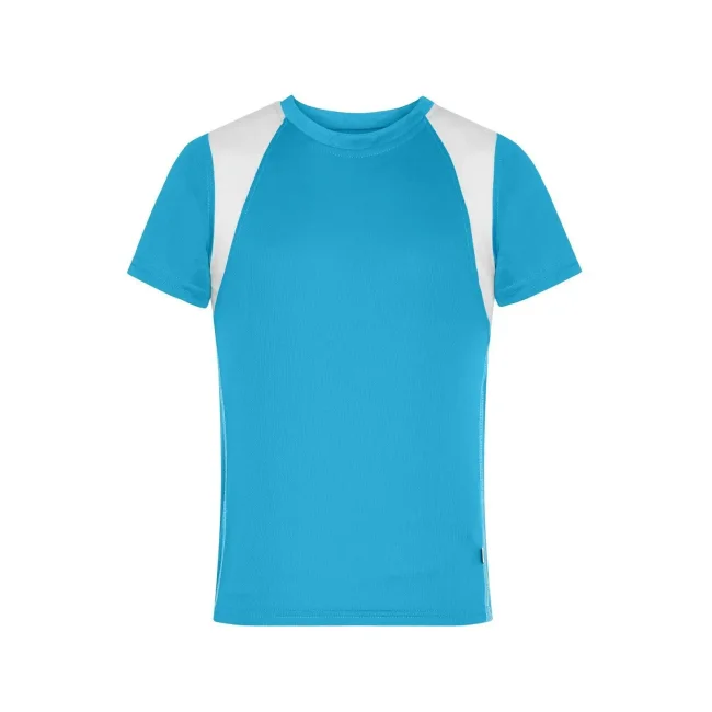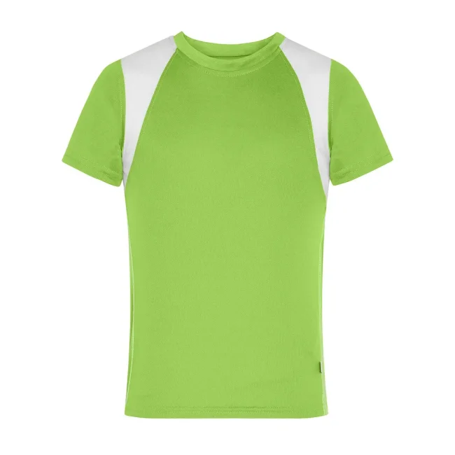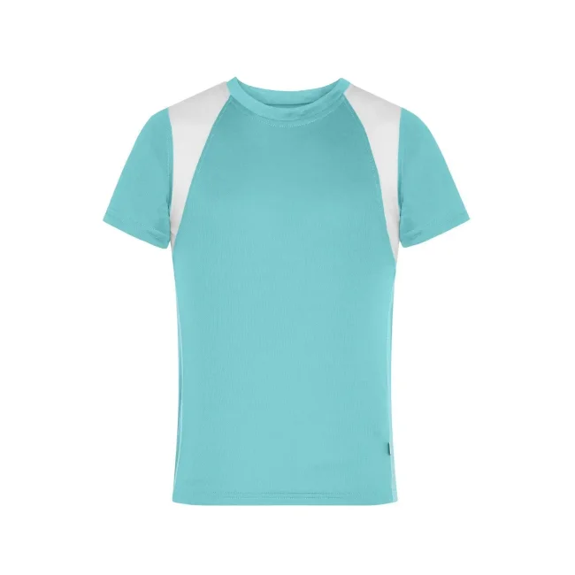 100% poliestere. T-shirt bambino maniche corte, tessuto (140 g/m²), ad asciugatura rapida, leggera e comoda, dettagli in contrasto, collo rotondo.