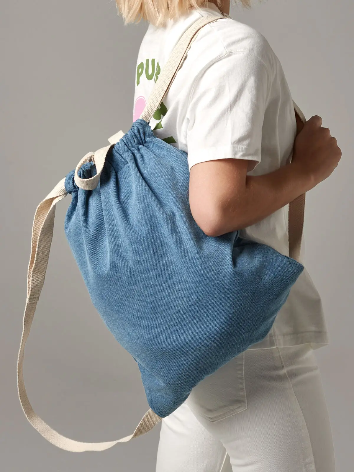 Sacca Denim Gymsac in cotone e poliestere con chiusura a coulisse e manici