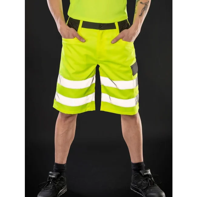 80% poliestere 20% cotone twill. Girovita leggermente elasticizzato con passanti, tasche posteriori, pannelli a contrasto neri, spacco sul davanti e tasche con zip, rinforzo sui punti di stress, bande riflettenti sulla gamba, tasca sul lato.