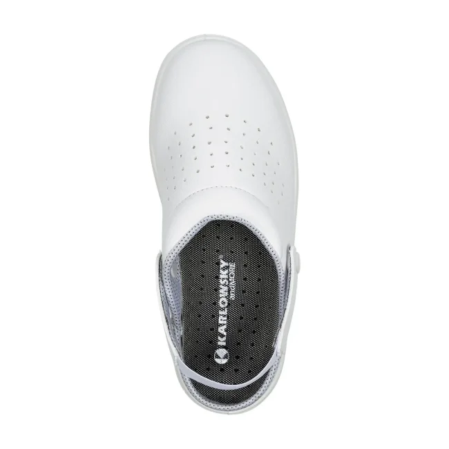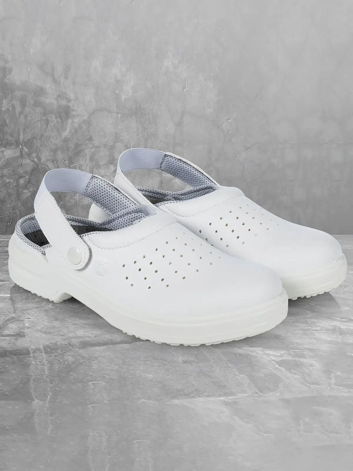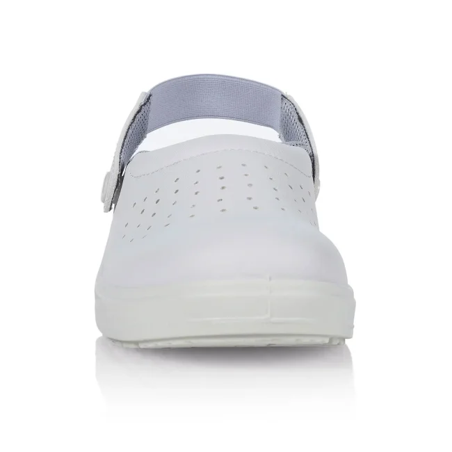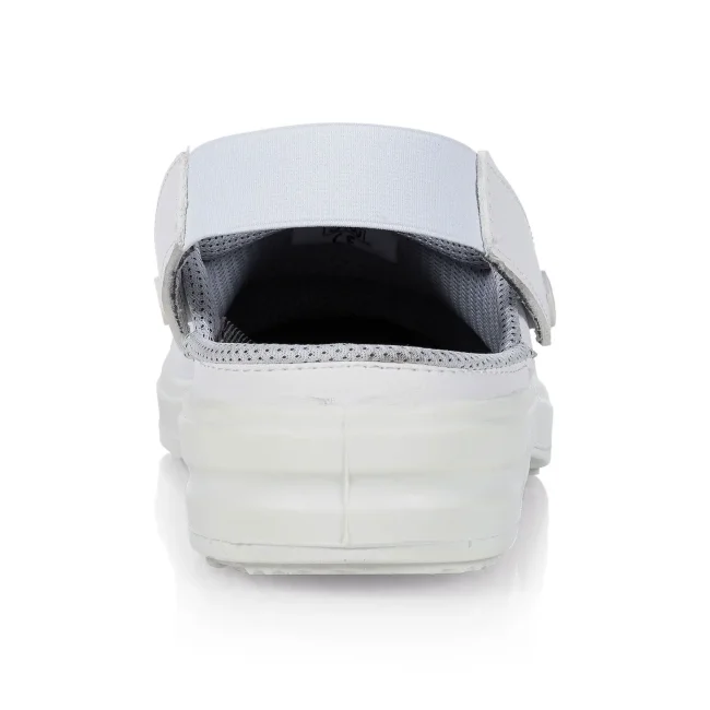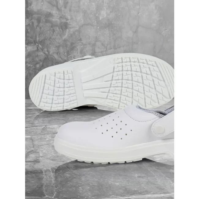 Tessuto esterno: 100% sintetico. Scarpa di sicurezza Oxford. Con puntale in acciaio, resistente agli urti: fino a 200 Joule, parte del tallone aperta, bottone a pressione removibile, vestibilità comoda, traspirante, fodera antibatterica permanente, sottosuola in PE, suola in PU antistatico, sntiscivolo, resistente a oli e combustibili, ammortizzazione ad alta energia sul tallone, lavabile fino a 40°C. EN ISO 20345:2011, SB-E-A-FO-SRC. Taglie: 35 - 47.
