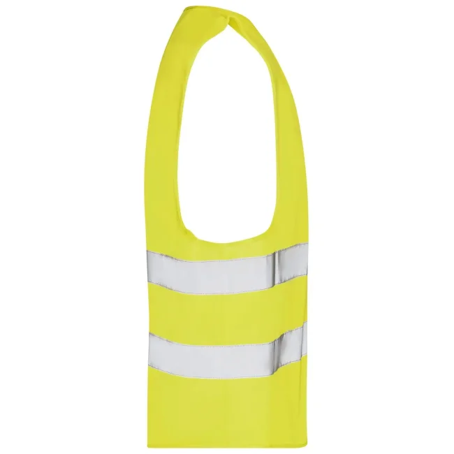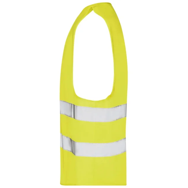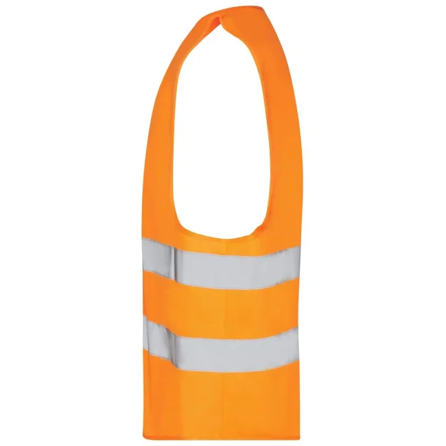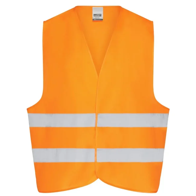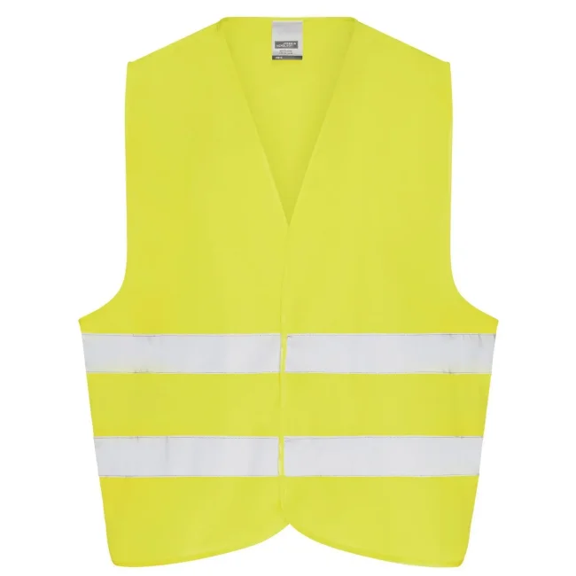 100% poliestere. Gilet di sicurezza per adulti, taglia unica. Bande riflettenti sul davanti e sul retro, Pratica chiusura in velcro. EN ISO 20471 : 2013 classe 2.