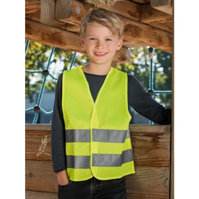 100% poliestere. Gilet di sicurezza basic in pratica sacca custodia, sacca dotata di chiusura con velcro, certificato secondo la norma EN ISO 20471:2013 + A1:2016, Oeko-Tex® Standard 100. Due fasce riflettenti da 5 cm intorno al corpo, durata delle proprietà riflettenti in conformità alla normativa EN per 25 cicli di lavaggio a 40°C. Confezionato singolarmente.