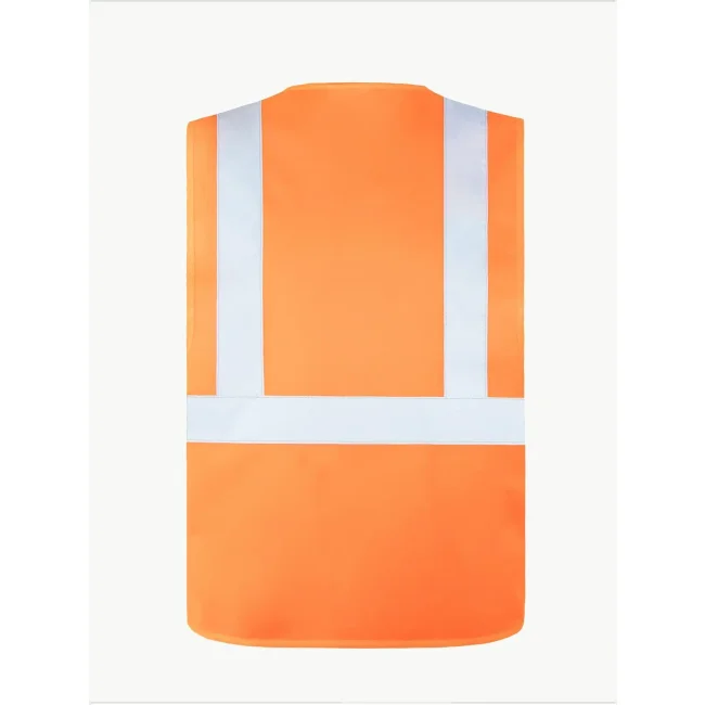 100% poliestere. Gilet di Sicurezza con tre fasce riflettenti. Conforme alla normativa EN ISO 20471:2013 + A1:2016, Oeko-Tex® Standard 100, colore arancione conforme anche alla normativa GO/RT 3279. Una fascia riflettente larga 5 cm intorno al corpo e due sulle spalle, misura regolabile grazie alla doppia chiusura con velcro. Confezionato singolarmente in una pratica borsa in polietilene. Classe 1 in L e XL, classe 2 in XXL.