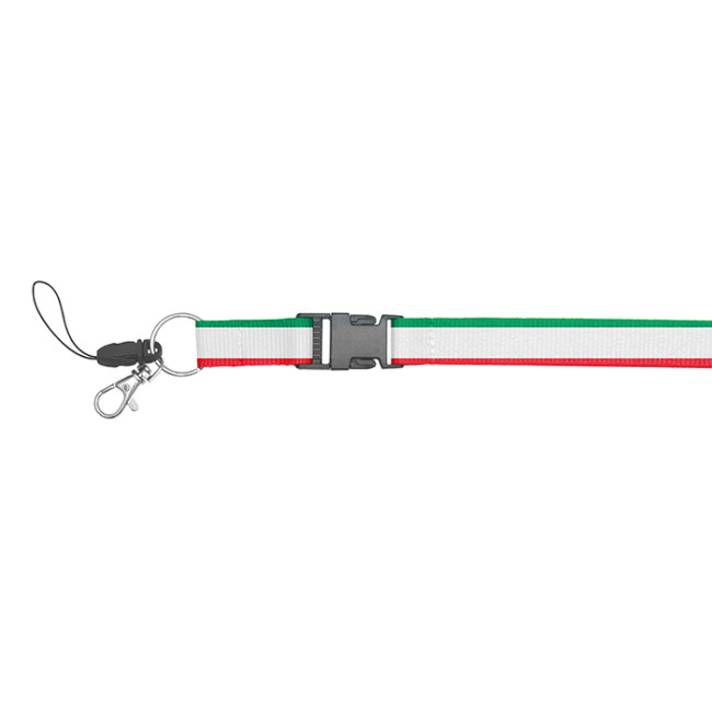 cordoncino da collo portachiavi gancio portacellulare con clip portabadge dispositivo di sicurezza gancio cromato tecnica di stampa consigliata: serigrafica - sublimatica (BI)