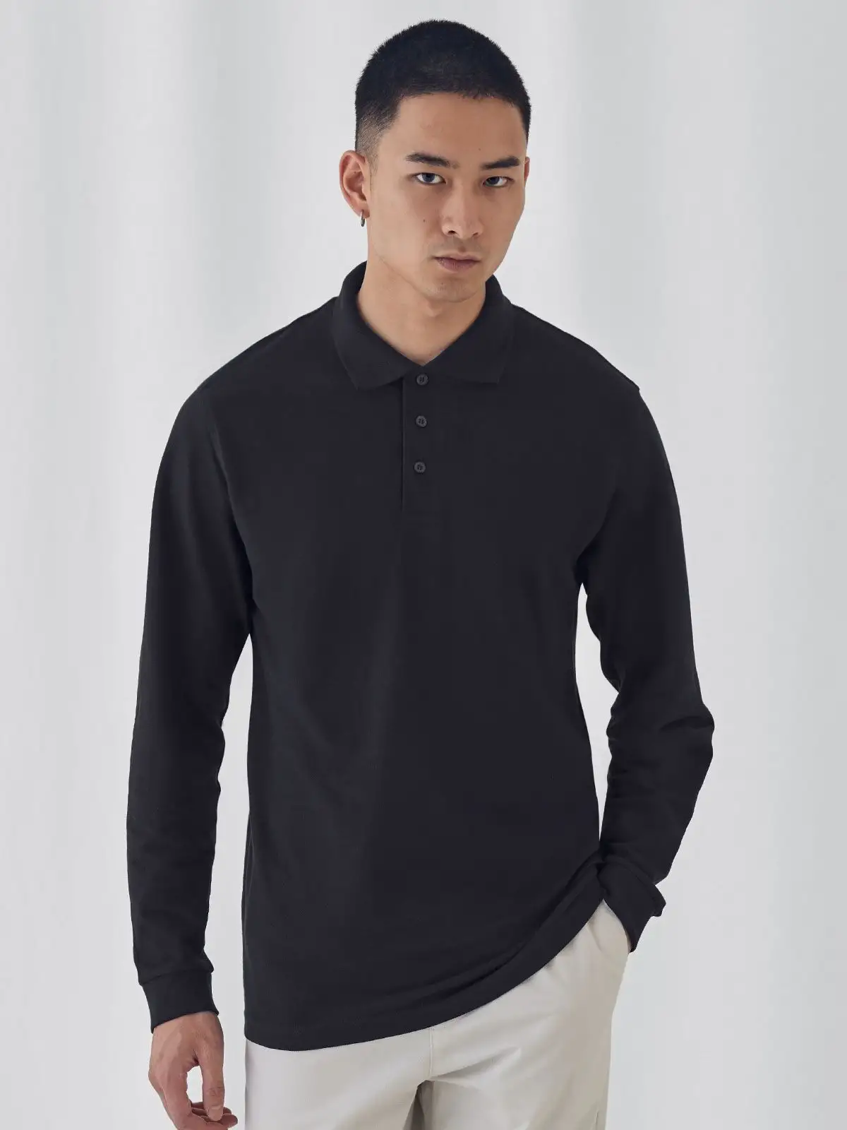 Polo a maniche lunghe realizzata in 100% cotone ring-spun, con 3 bottoni tono su tono e una struttura con cuciture laterali. I colori AS600 e HG610 presentano rispettivamente 99% cotone e 1% poliestere, e 90% cotone e 10% viscosa. Un capo versatile per ogni occasione.