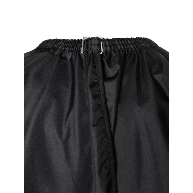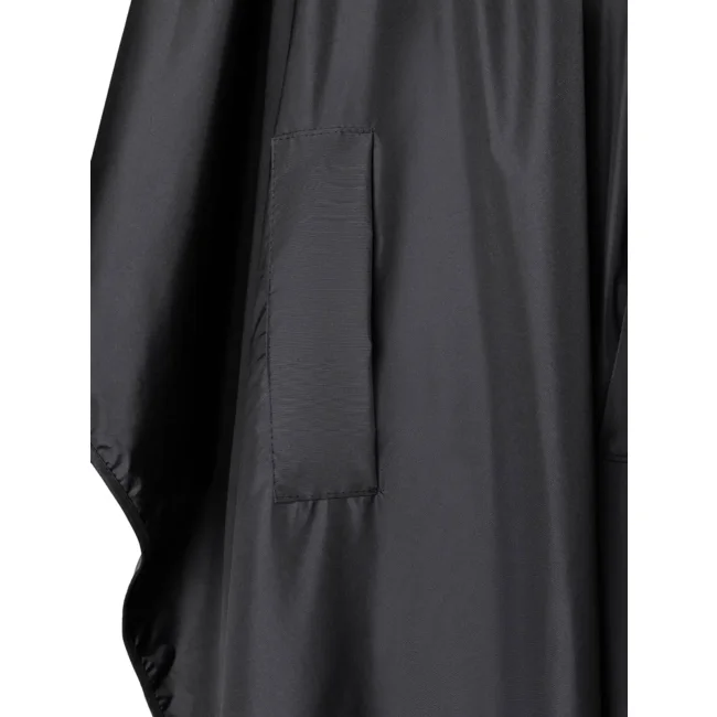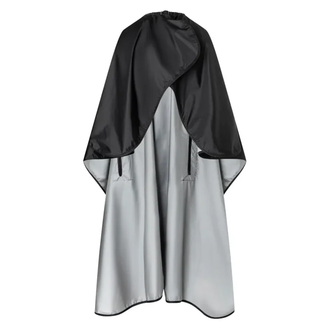 100% poliestere. Mantella da parrucchiera ideale per tintura capelli, rivestimento impermeabile in argento, con impugnature per le mani, gancio da appenderia, chiusura elastica regolabile con clip in metallo, antistatico, lavabile a 30°C. Dimensioni: 130 x 150 cm.