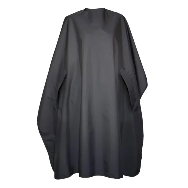 100% poliestere. Mantella da parrucchiere con impugnature per le mani, con pratico gancio da appenderia, chiusura elastica regolabile con clip in metallo, impermeabile, antistatico, lavabile a 60°C. Dimensioni: 130 x 150 cm.