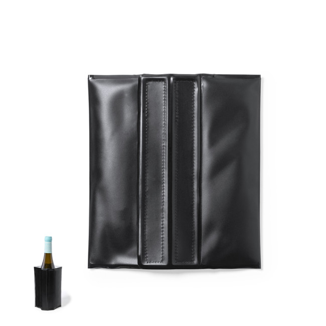 Raffredda bottiglie con chiusura in velcro regolabile, liquido di raffreddamento all'interno e realizzato in PVC nero opaco.