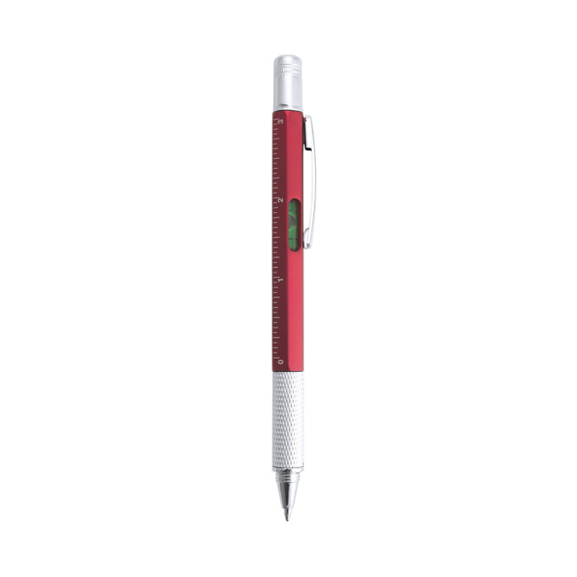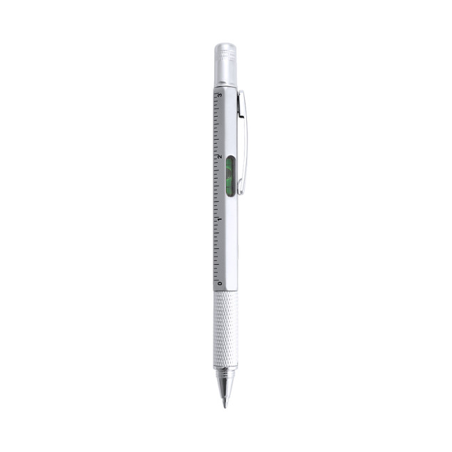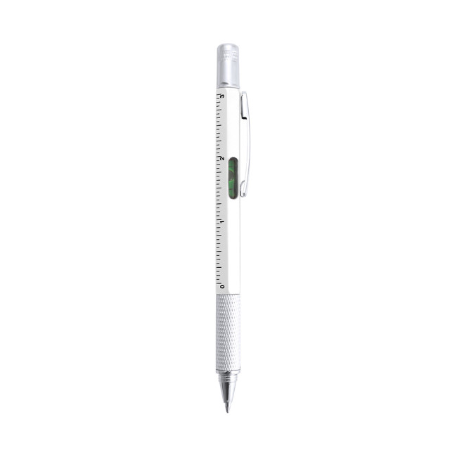Penna multiutensile 4 in 1 con meccanismo a rotazione, in diversi colori e con impugnatura morbida. Con livella integrata, righello metrico in centimetri/pollici e cacciavite a doppia testa, piatta e a croce. Con clip in metallo e inchiostro blu.