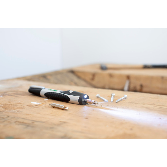 Set attrezzi tascabile, cacciaviti, livella e luce, in ABS, batterie incluse