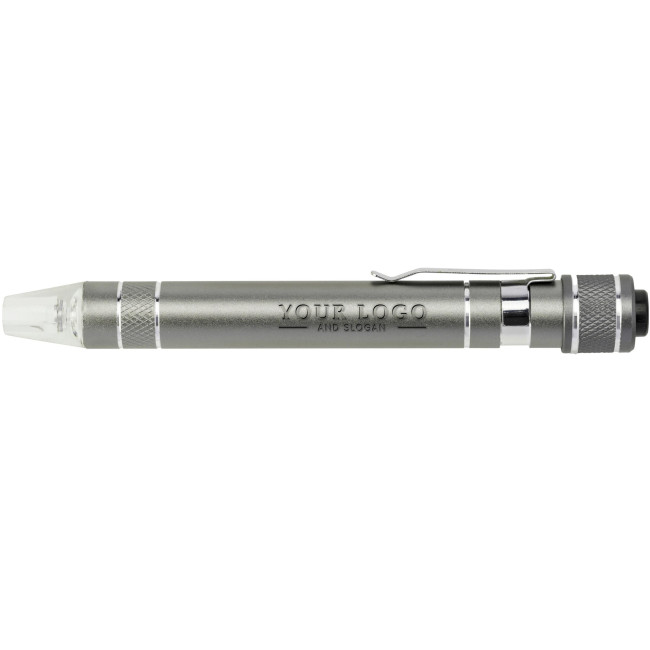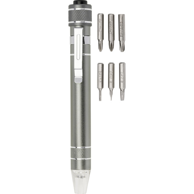 Set cacciavite in alluminio tascabile, 6 punte intercambiabili, a forma di penna, clip in metallo, batterie incluse