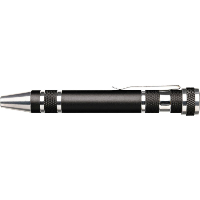 Set cacciavite in alluminio tascabile, 4 punte piatte e 4 punte a stella intercambiabili
