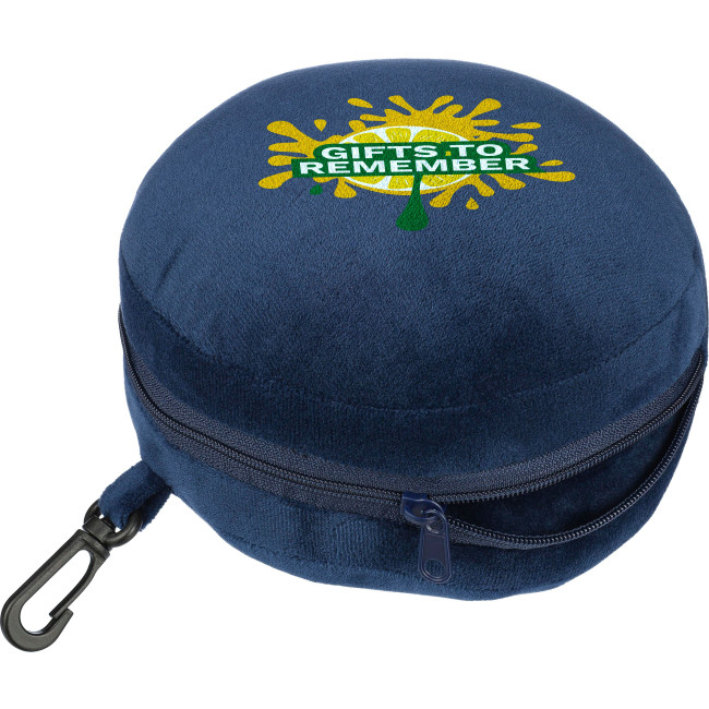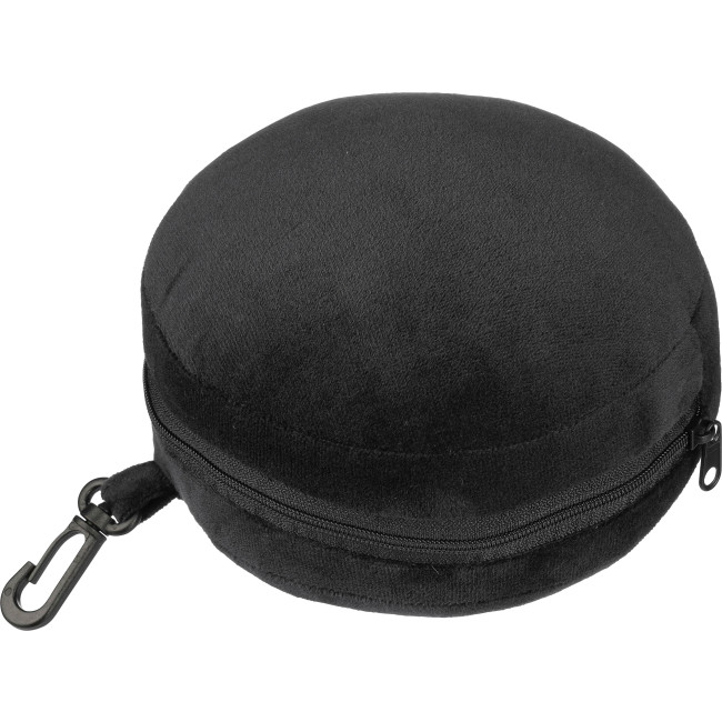Set cuscino da viaggio in poliestere con morbida imbottitura in poliestere e cotone PP. Include una mascherina per gli occhi e si trasforma in un cuscino quando si apre la cerniera. Presenta un moschettone in PP per un facile aggancio durante il viaggio.