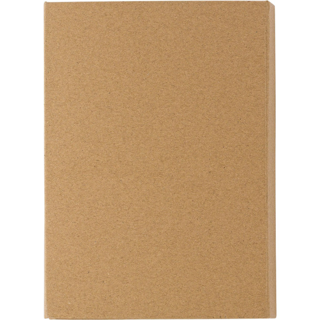 Set di scrittura in cartone, comprende taccuino con 40 pagine a righe, righello in bamboo 15 cm, due matite, un temperamatite, una gomma, memo stick in vari colori, tasca interna, penna a sfera in cartone, refill blu