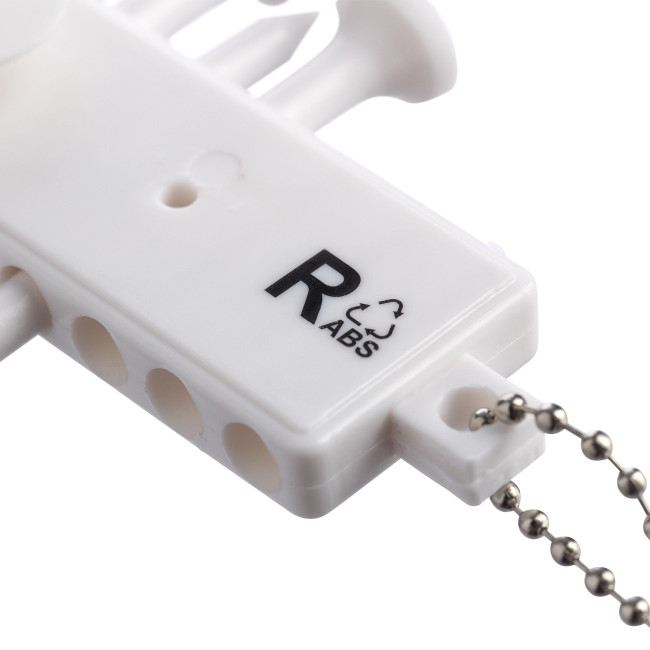Set di tee da golf in ABS riciclato composto da 12 tee in un supporto compatto con tre indicatori sul retro. Presenta un cordino metallico per un facile fissaggio e include il logo ABS riciclato sul retro.