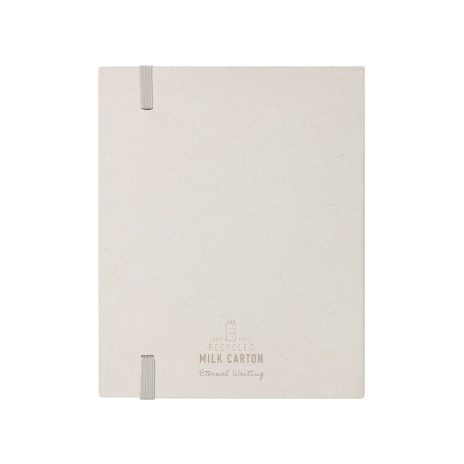 Set di matite colorate eterni, realizzato con cartoni del latte riciclati, composto da 6 matite, una gomma e un quaderno con 50 fogli bianchi. Include una pratica chiusura elastica e il logo dei cartoni del latte riciclati, contribuendo all'economia circolare.