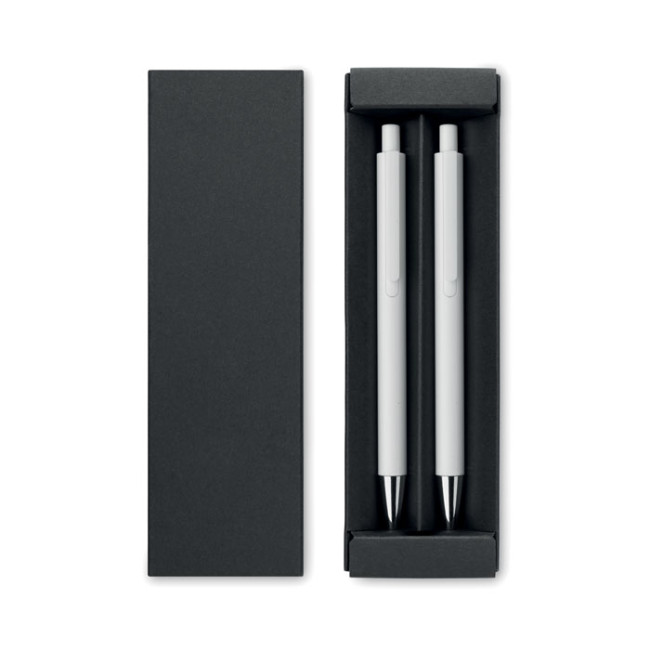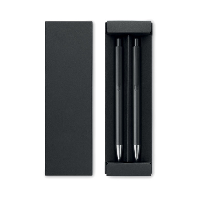 Set di penne realizzato in alluminio riciclato, comprende una penna a sfera e una penna a inchiostro di grafite. Presentato in una scatola di carta riciclata, un'ottima scelta per chi cerca sostenibilità e stile.