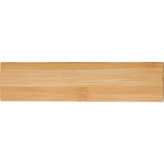 Set scrittura in bamboo, composta da portamina e penna a sfera capacitiva (compatibile su schermi touch), meccanismo a scatto, particolari argentati, in astuccio di cartone, refill blu