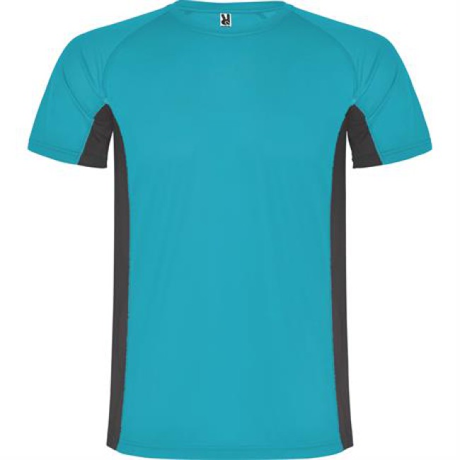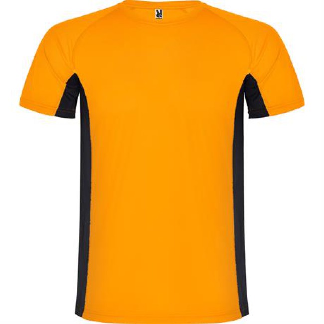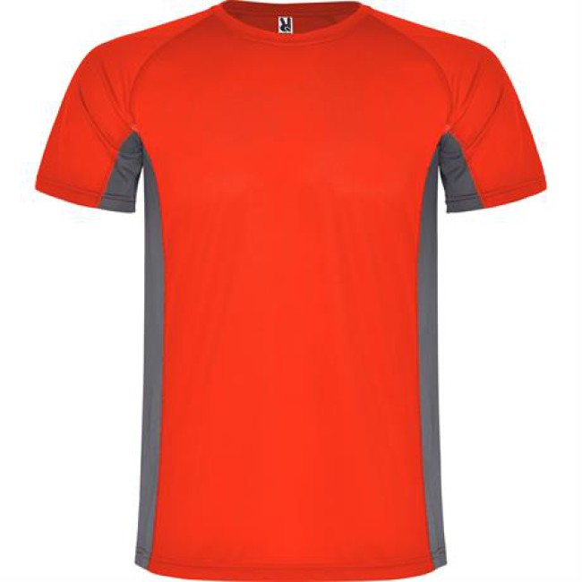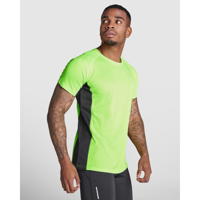 T-shirt tecnica con due tessuti in poliestere, maniche corte stile raglan. Tessuto principale occhio di pernice ,fasce laterali e interni della manica in tessuto microforato. Girocollo con copri cuciture di rinforzo interne. T-shirt in tessuto confortevole che si adatta facilmente al corpo.