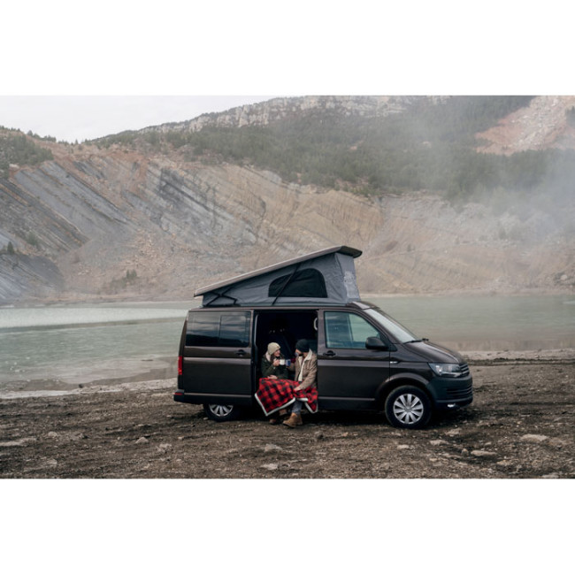 Coperta in pile foderata Sherpa in pile polare 1RPET (180 gr/m²) e poliestere sherpa (230 gr/m²). Presentato in una maniglia per il trasporto in nylon RPET.