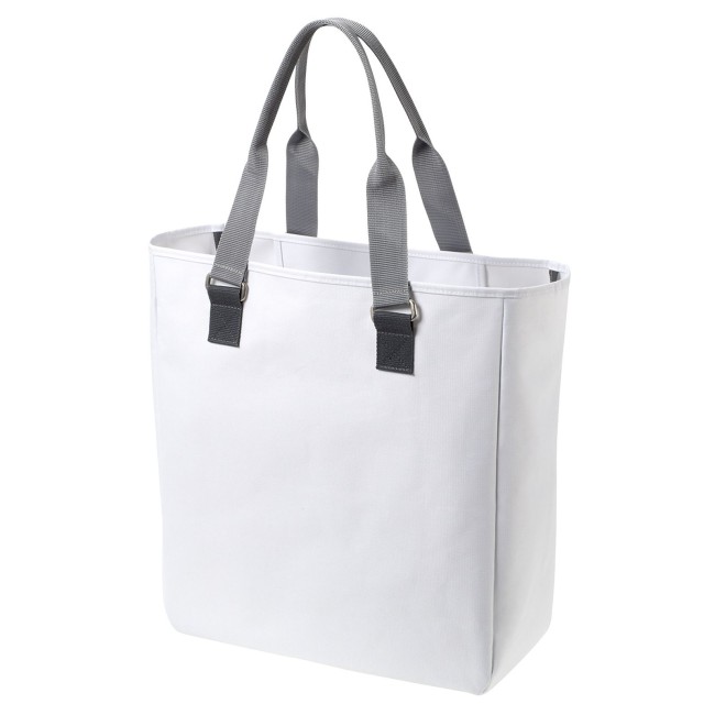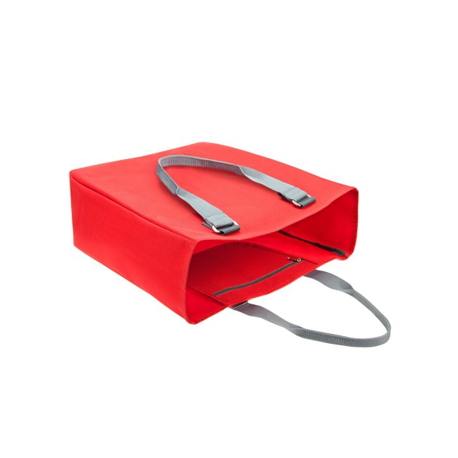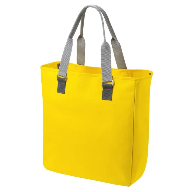 100% poliestere 600d. Grande shopper con fibbie in metallo decorative e tracolla bicolore. Scomparto principale con organizer sospeso con chiusura lampo. Dimensioni: 40 x 43 x 16 cm, capacita': 36 litri, area stampabile: 32 x 28 cm.