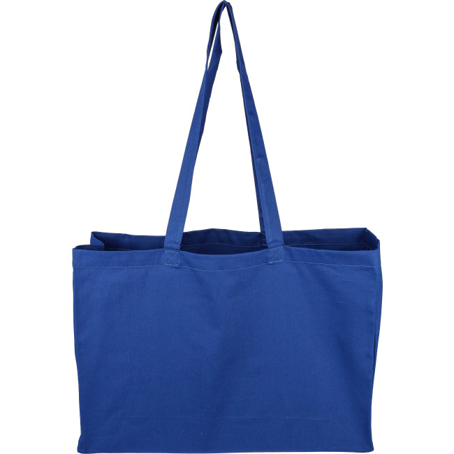 Shopping bag in cotone Oeko-Tex 220g/m2, cotone colorato, soffietto da 10 cm, manici lunghi, peso massimo trasportabile circa 8 kg, include etichetta Oeko-Tex®