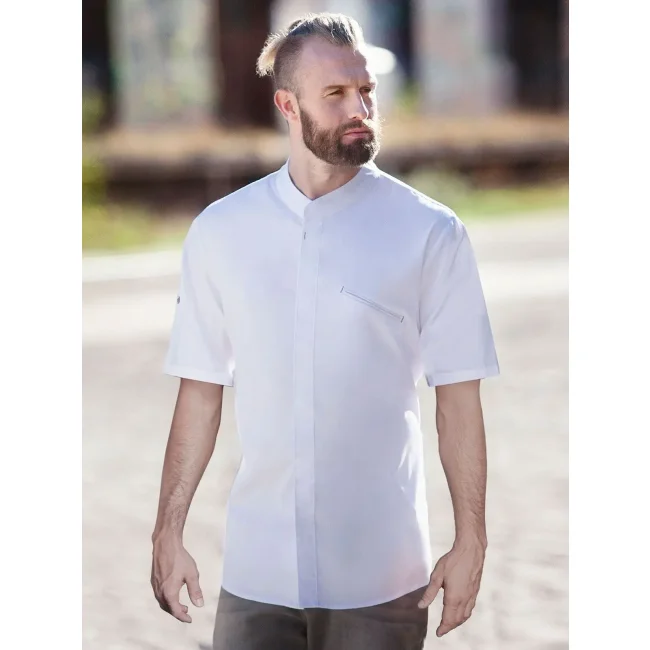 50% poliestere, 50% cotone. 150 g/m², giacca da cuoco a maniche corte, lavabile a 95°C