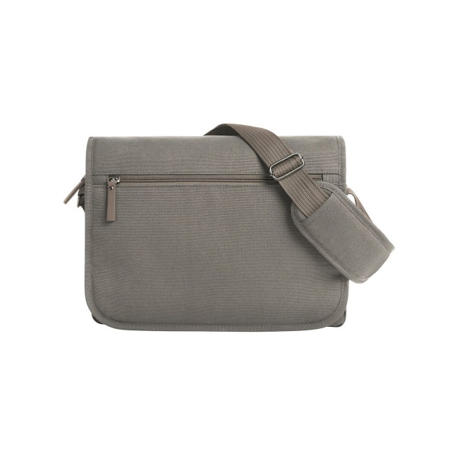 100% cotone. Tracolla con ampio scomparto principale con chiusura lampo, imbottito sul retro, con tasca a inserto imbottita, ad es. per tablet, scomparto interno piatto con chiusura lampo, tasca piatta anteriore, risvolto con chiusura magnetica e tasca anteriore con chiusura lampo, spallaccio di lunghezza regolabile, con imbottitura cucita sulla spalla, accessori metallici preziosi e applicazioni in pelle sintetica scamosciata PU. Dimensioni: 34x26x10 cm. Area personalizzabile: sulla patta 22x12 cm.
