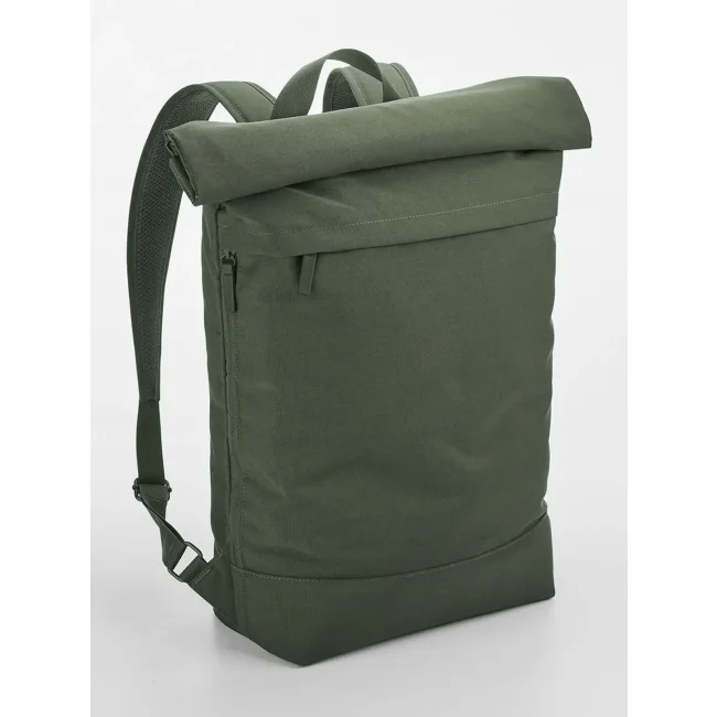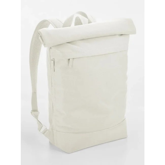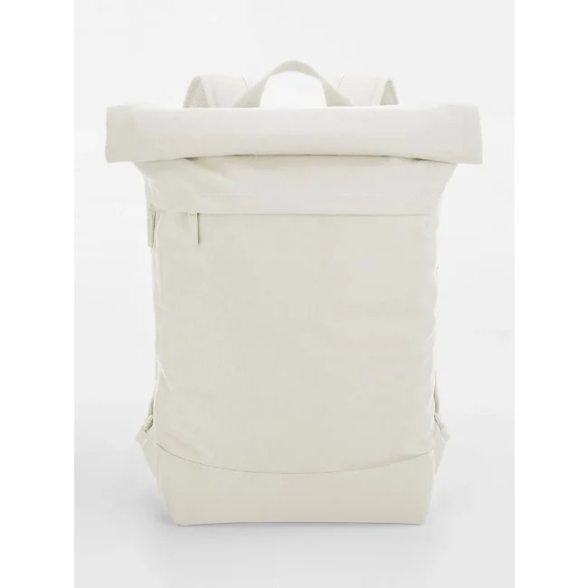 100% poliestere riciclato. Zaino per laptop fino a 15.6'', tessuto idrorepellente, chiusura magnetica roll-top, tasca esterna, tasca laterale con zip per bottiglia/ombrello, zip frontale esterna per facilitare la personalizzazione, taschino interno, schienale in rete imbottito, cinghia posteriore per i bagagli, spallacci in rete imbottiti e regolabili. Dimensioni: 50x40x13cm, Capacità: 15 litri, Area stampabile: 27x34cm massimo. Etichetta strappabile.