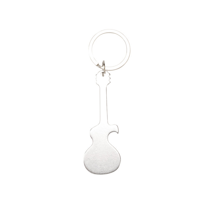 Portachiavi con apriblottiglia a forma di chitarra con corpo in alluminio in una varietà di colori brillanti. Appositamente progettato per la stampa laser.