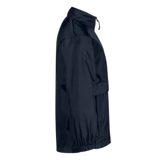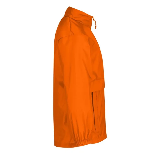 100% nylon impermeabile taffeta. K-way richiudibile nella tasca interna, con cappuccio richiudibile nel collo, cordoncino regolabile nell'orlo inferiore.