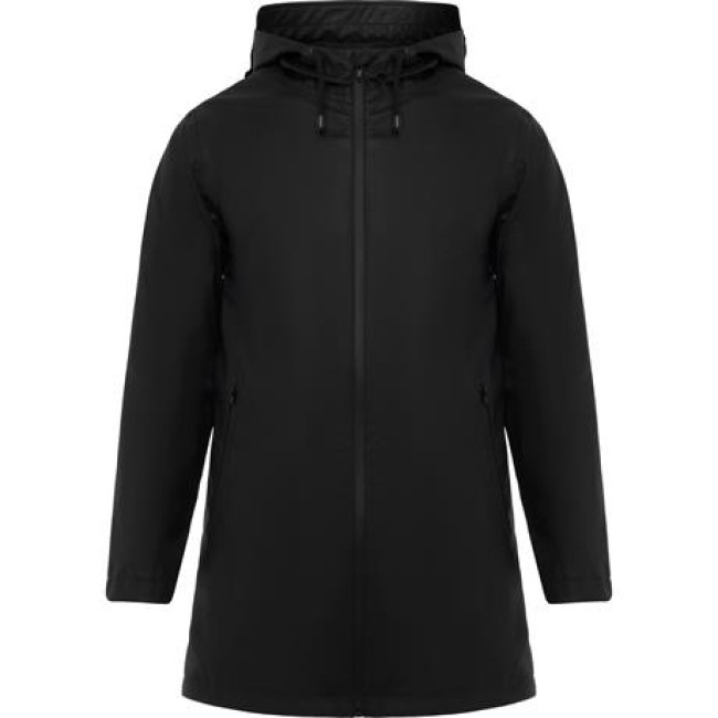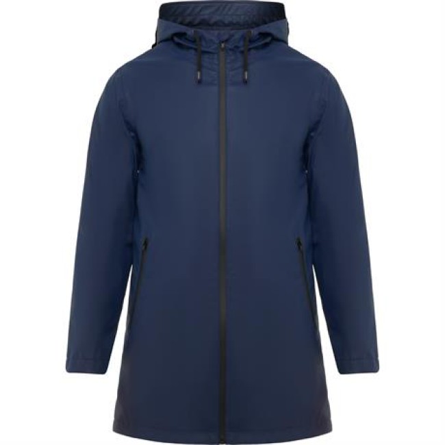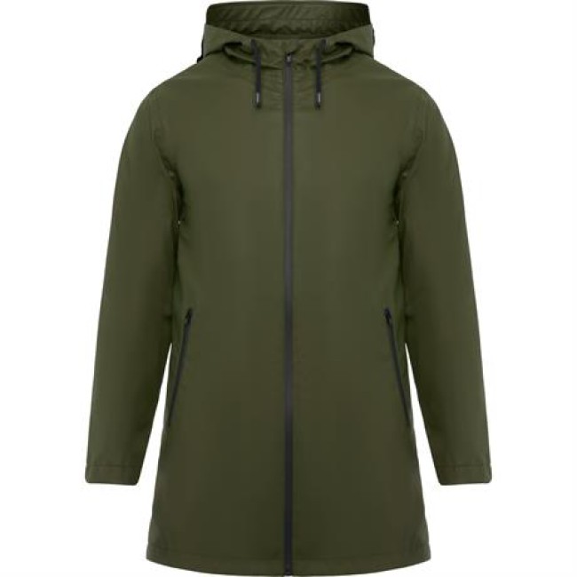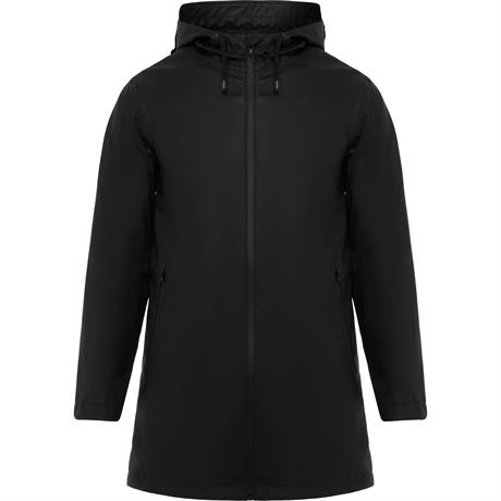 Giacca da pioggia impermeabile.Cappuccio fisso con visiera.Zip centrale tono su tono con tirante.Dettagli in cotrasto nel colore nero.Due tasche laterali.Parte bassa posteriore con apertura.