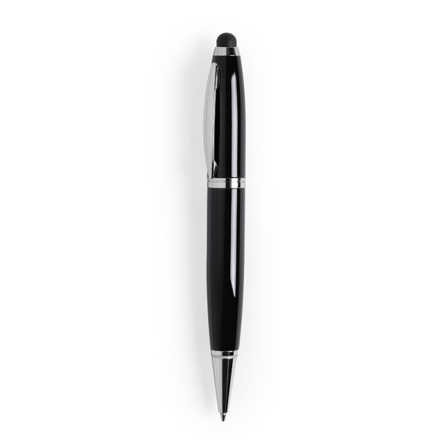 Penna tecnologica multifunzionale dai colori sobri, con chiavetta USB da 16 GB integrata nel cappuccio e touch in gomma morbida coordinato. Finitura metallica lucida, fusto con apertura a rotazione e inchiostro blu. Presentata in un'elegante scatola di cartone bianco con chiusura magnetica e morbida schiuma fustellata.