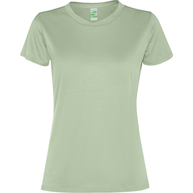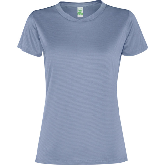 Maglietta tecnica da donna a maniche corte. Tessuto leggero realizzato in poliestere riciclato.· Colletto con dettaglio a incrocio e cuciture a vista.· Carré posteriore e maniche in tessuto traspirante.· Cuciture sporgenti e inclinate sui fianchi e sulle spalle.· Orlo arrotondato.· Combinazione di tessuti traspiranti ed elastici.