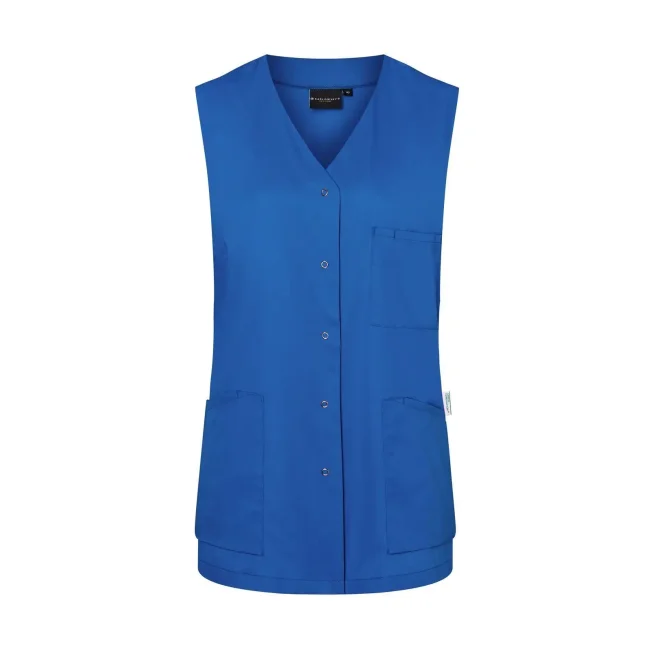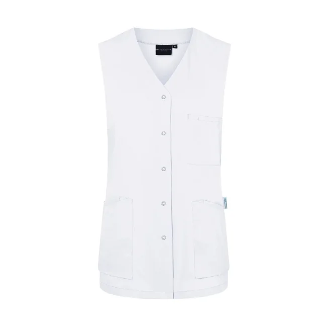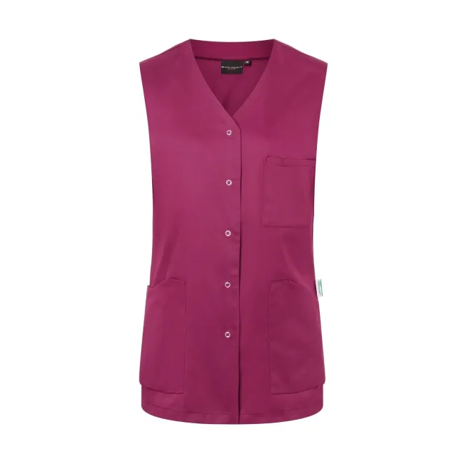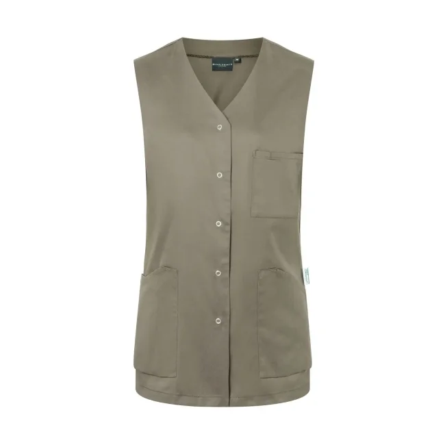 65% poliestere riciclato, 35% cotone. Tunica da donna senza maniche, apertura frontale con bottoni