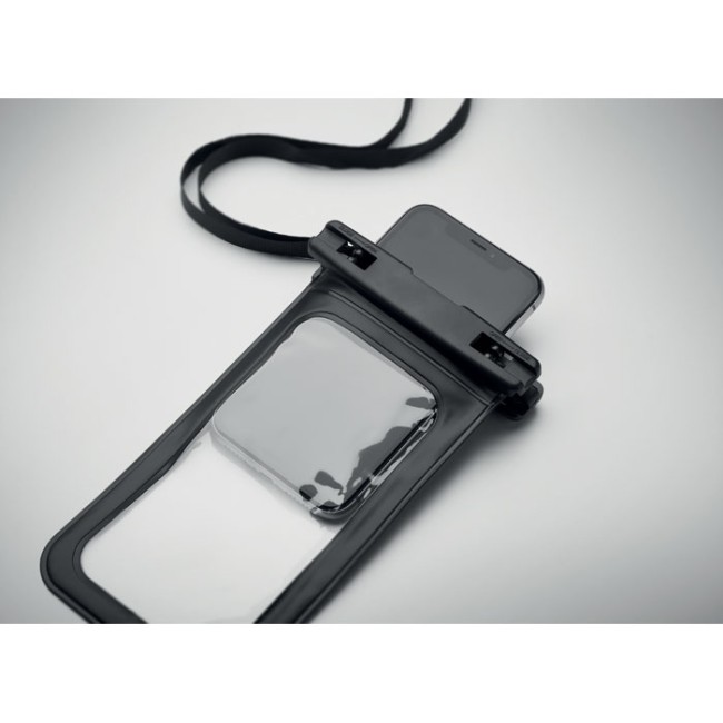 Custodia impermeabile per telefono con cordino regolabile e removibile. Grado di impermeabilità: IPX 8. Adatta a telefoni con schermo fino a 6,7 pollici.