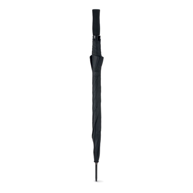 Ombrello automatico da 23 inch in pongee 190T. Struttura in metallo placcata nera. Punte in plastica nera. Manico dritto in EVA nero. Chiusura manuale.