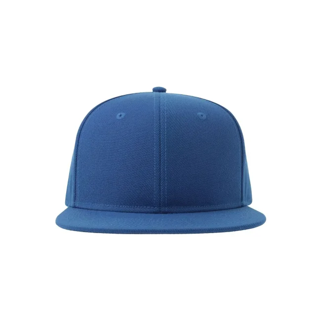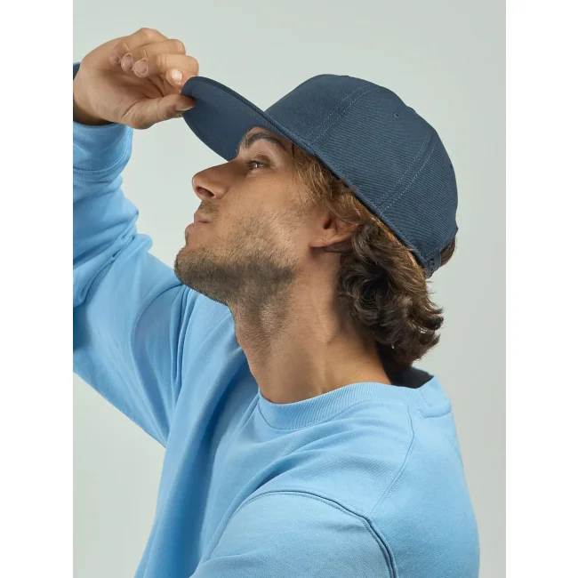 100% Poliestere twill riciclato. Cappello a 6 pannelli in poliestere riciclato, con occhielli ricamati, visiera piatta, chiusura con cinturino in pvc, etichetta removibile, taglia unica (disponibile anche taglia da bambino - ATKSBS).