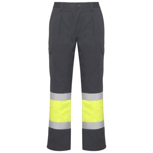 Pantaloni invernali multitasche adf alta visibilità.· Elastico in vita sul retro. · Due tasche con patta sul retro e chiusura a velcro. · Due tasche sul davanti e due tasche laterali con soffietto e chiusura a velcro. · Bicolore con bande riflettenti.