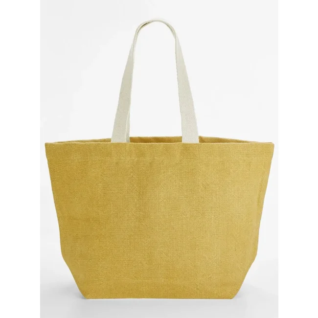 100% Juta. Borsa mare con taschino interno e manici per portala a mano o in spalla. A causa della natura del tessuto i colori possono variare. Lunghezza del manico: 63 cm. Dimensioni: 35x37x18cm. Capacità: 34 litri. Area di stampa: 25x30cm.