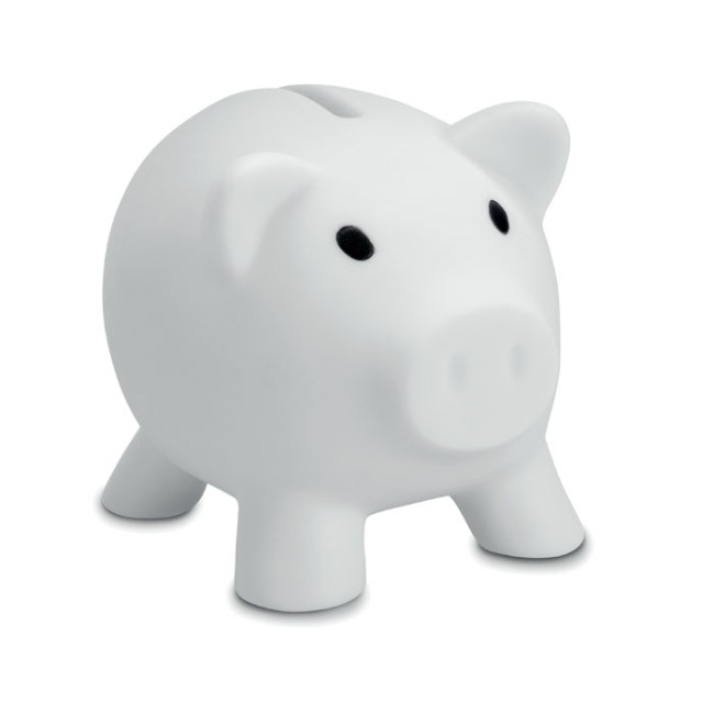 Maialino salvadanaio in PVC con tappo in ABS sul fondo.