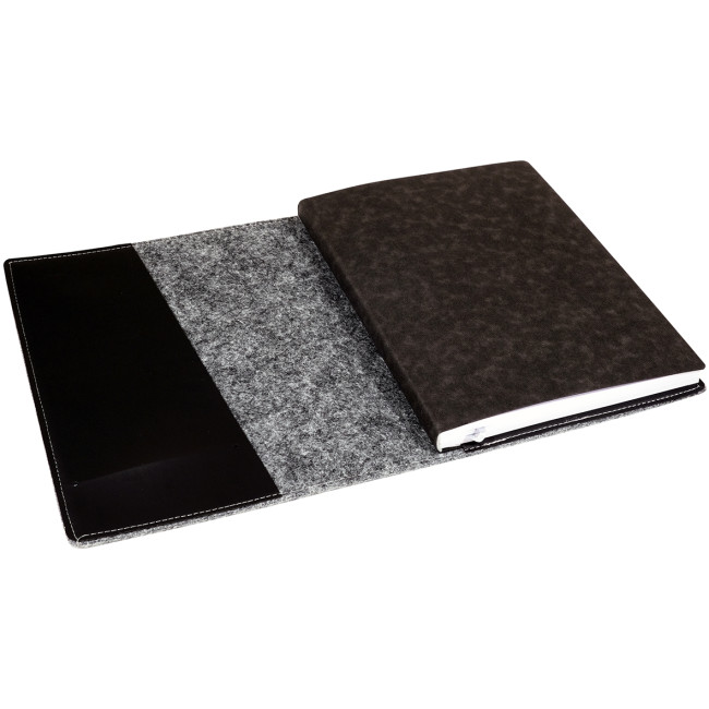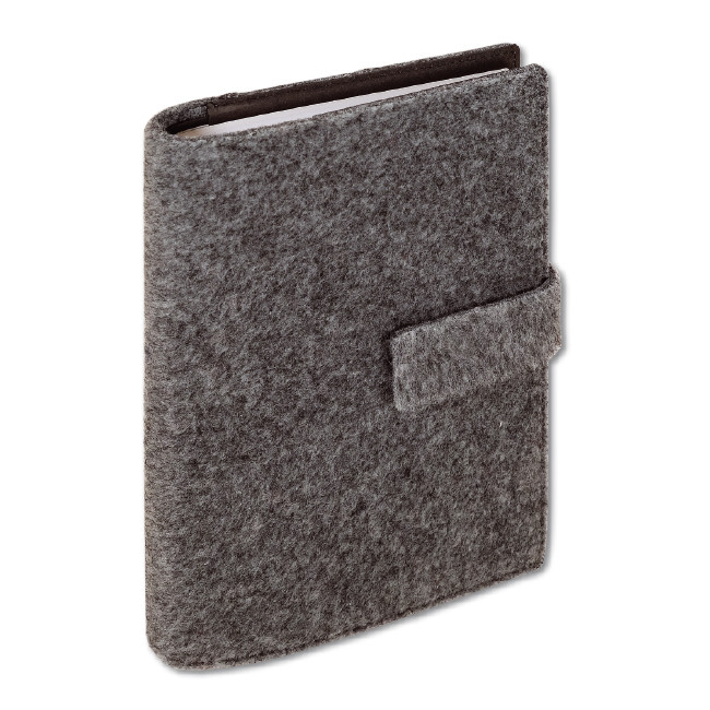 Agenda giornaliera 14,3x20,3 a portotafoglio in R-PET, ricavato dal riciclo delle bottiglie . Grafica in carta bianca da 60 gr. certificata FSC. Composta da 320 pagine, con sabato e domenica abbinati e compresa di rubrica al fondo.