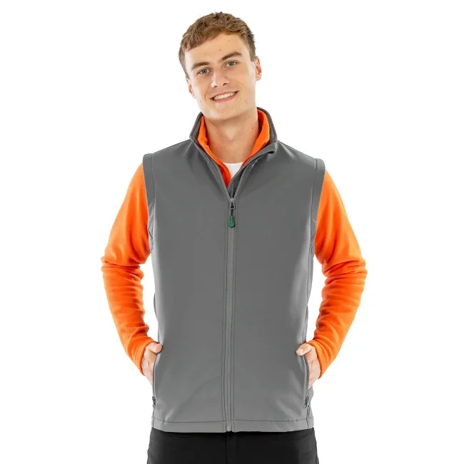 100% poliestere riciclato TOPGREEN®. Interno: 100% poliestere riciclato micropile. Gilet in softshell stampabile con colletto alto, taglio attillato, zip YKK NATULON® Eco-Friendly.