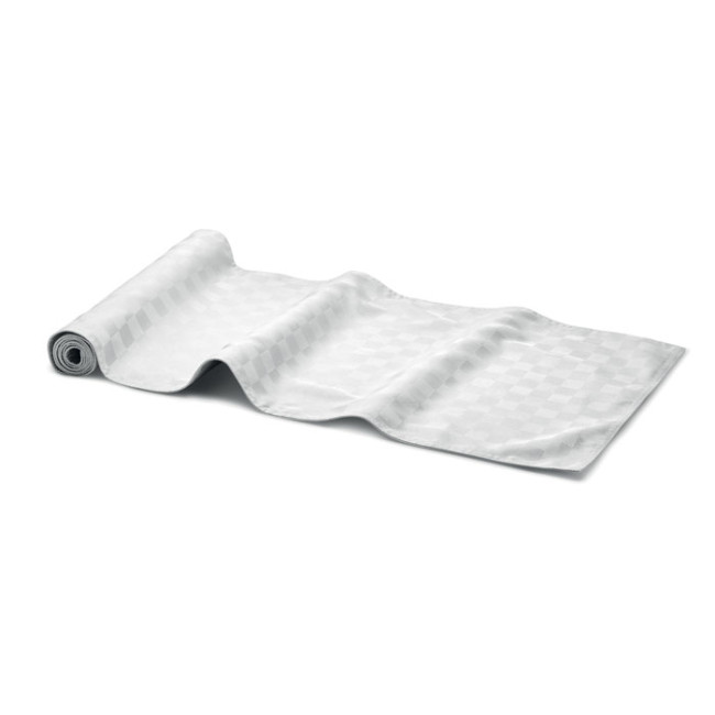 Runner da tavolo in poliestere 185 gr/m² con fodera in microfibra e tessuto non tessuto con finitura idrorepellente sul lato anteriore. Dimensioni: 1,40x0,40 m.