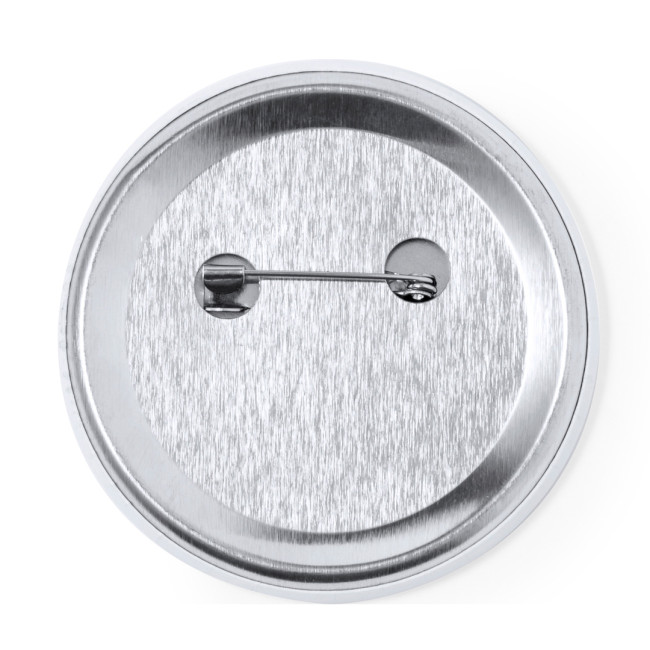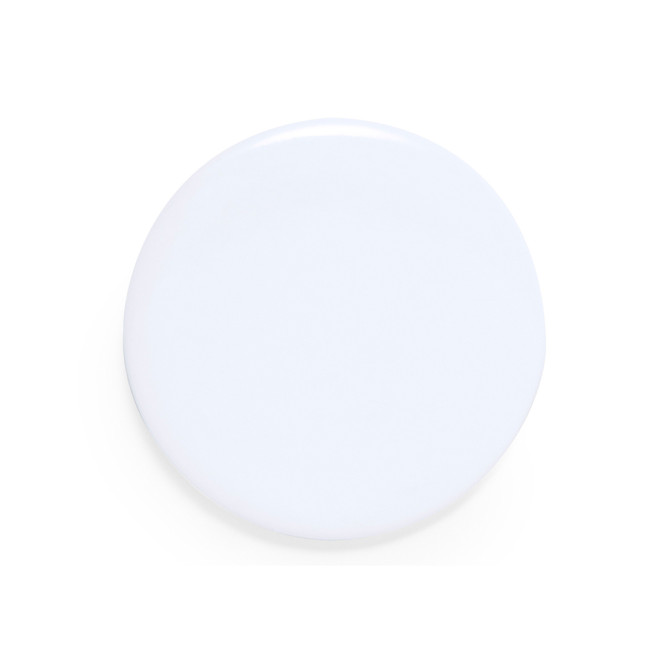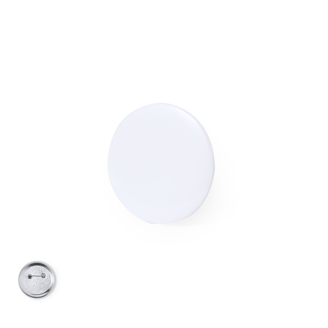 Spilla di colore bianco, versatile e adattabile a qualsiasi tessuto grazie alla spilla di sicurezza sul retro. Ideale per stampare una moltitudine di disegni, offre un'ottima base per la personalizzazione e si presta a vari utilizzi.