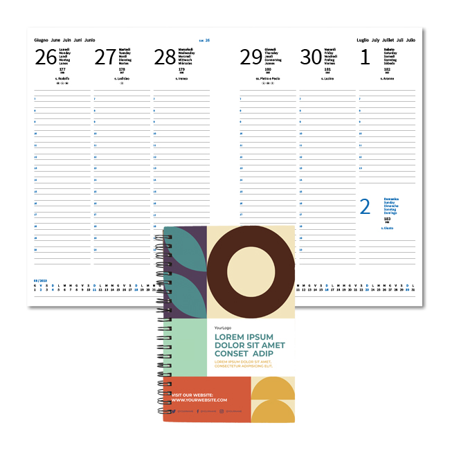 Agenda settimanale. Carta bianca certificata FSC da 80 gr, 128 pagine.