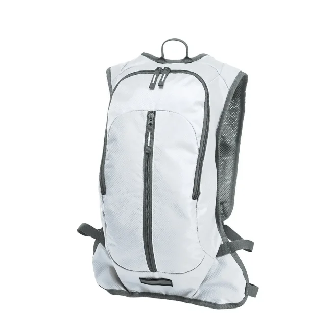 100% poliestere 420d & ripstop. Zaino sportivo con sistema di cintura imbottito, cintura toracica e in vita regolabili, tasca anteriore con chiusura lampo. Dimensioni: 25 x 47 x 9.5 cm, capacita': 8 litri, area di stampa: frontale 12 x 5 cm, tasca anteriore 18 x 3 cm.